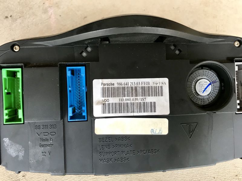 Pulled from a 2004 550 Special Edition with 122k miles. Factory painted GT Silver gauge surround, silver gauge faces, silver gauge rings, and black leather dash pod. I was going to swap the silver bits over to my 1999 model but failed to realize my older cluster is different. If you have a dot matrix type cluster it's easy to swap the gauge faces and rings for a nice upgrade. Or if you want to paint the cluster surround to match your painted center console it would be easier because this one is already nice and glossy.