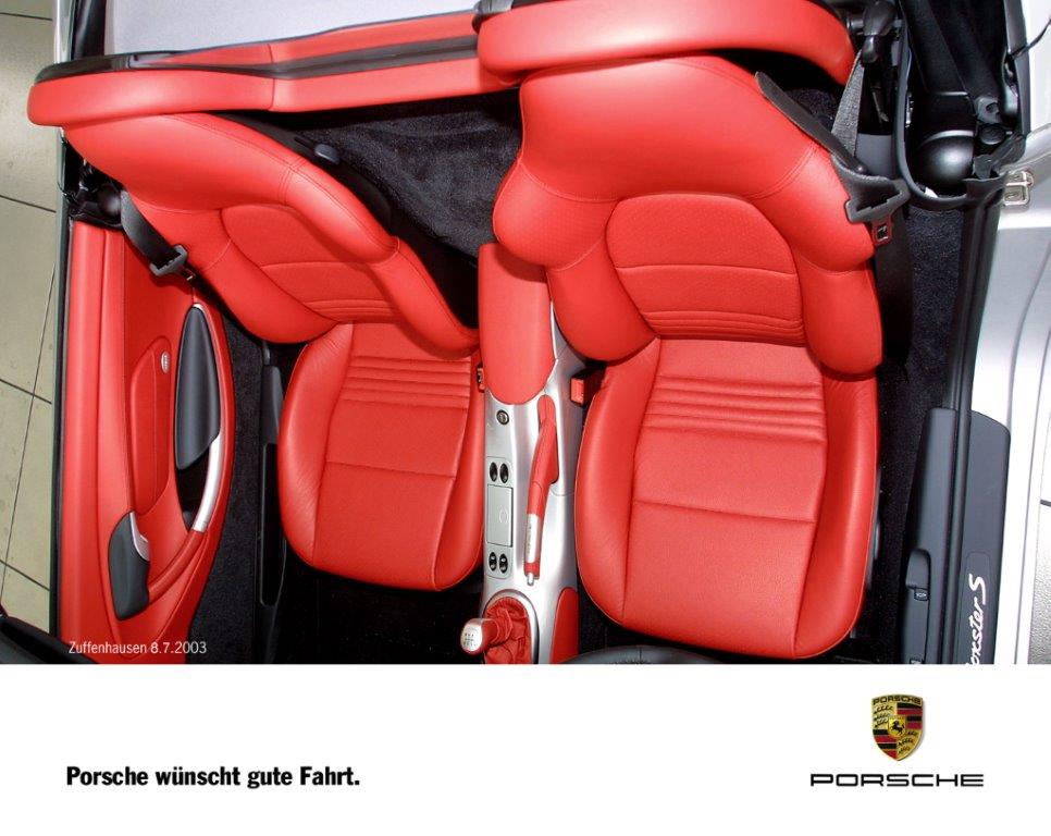 Here's a 2003 S with a lipstick red (not Boxster red) interior with sport seats. I hope to be able to buy this car from the owner someday (he special ordered it, picked it up at the factory and brought it back to the states) - it's the most unique factory interior I've seen.