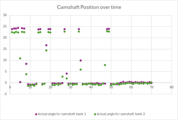 For cam angle values over 20 the values clearly separate, which probably means one bank is not able to move the timing to the target range, probably because the chain pad is shot on that side.