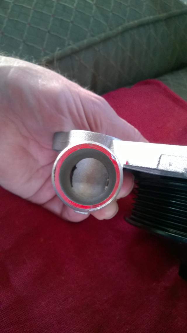 This image shows a casting fault in the Autozone pump within the water passage. The black silhouette inside the passage is metal that I used a dremel on to remove to smooth out. Still, I was very glad for the metal product as shown below.