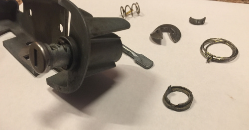 Woody I'm hoping you can help me out... Last night I put my key in the door lock and turned it, the door unlocked but the key would not turn back to center or come out. So I spent my Sunday evening in the parking lot of Wal-Mart taking off my door panel and removing the lock assembly. When I got it out it pretty much fell apart.