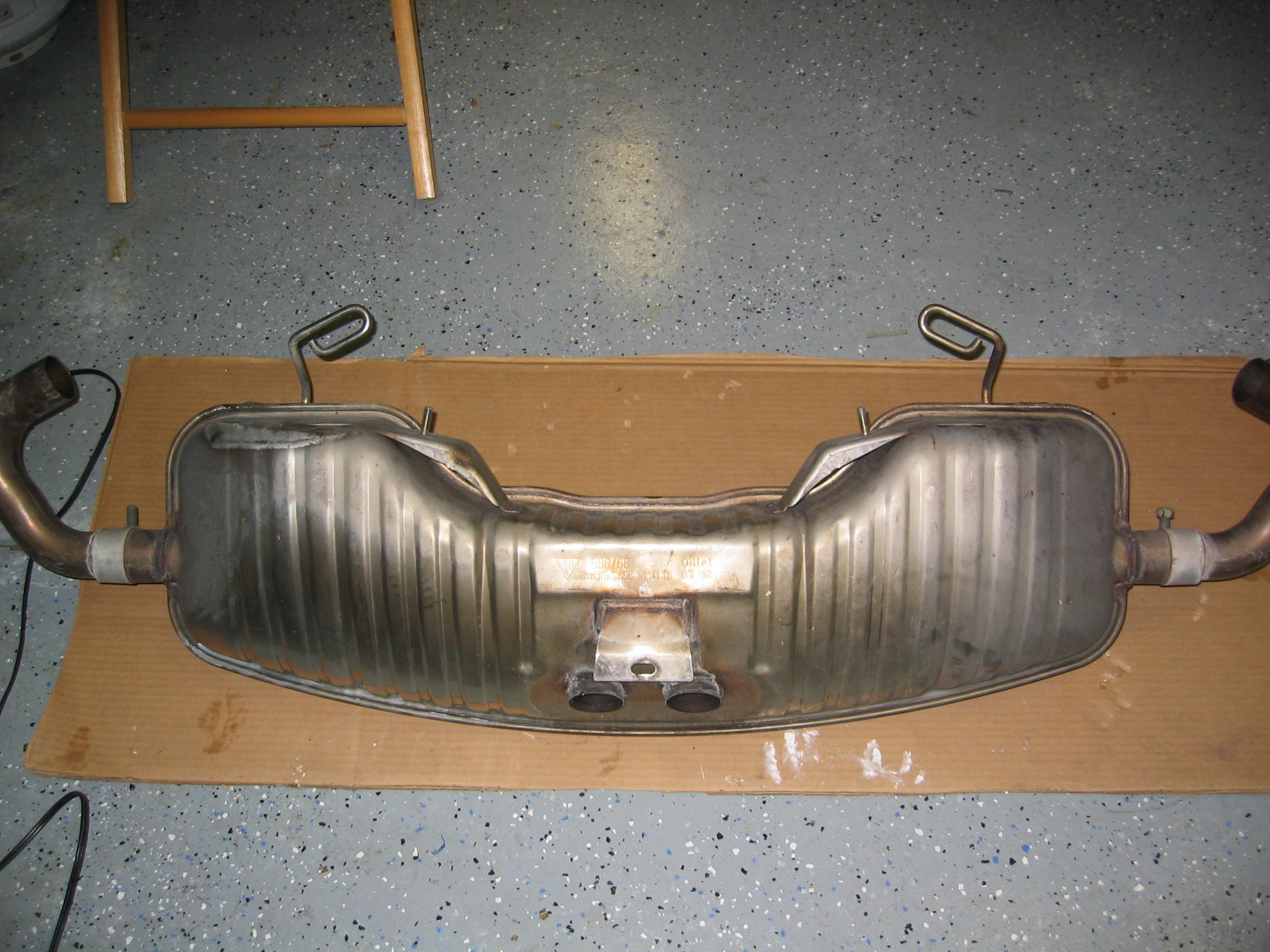 This OEM muffler was taken off a 2004 Anniversary Edition Boxster S at 18,000 miles. It's in very good shape. It would make a good candidate for a Pedro exhaust modification or just a replacement muffler for a worn out OEM unit.