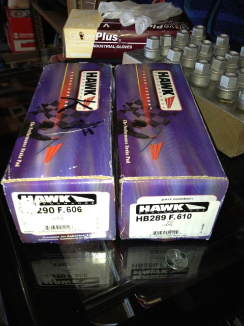 Hawk HPS brake pads. Front & Rear Full sets Note: These pads DO NOT have the holes for brake pad sensor wires. Would be perfect for racing setup... (No brake sensors) Front - HB289F.610HB289F.610 Hawk HPS Performance Street Brake Pads Fits: