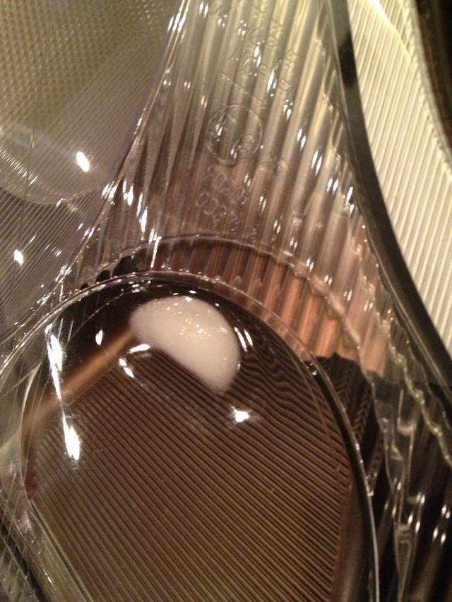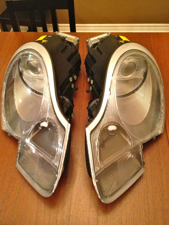 There is a blemish on each light as shown in the pictures. The original owner tells me that the original city light bulbs were oversized and the extra heat caused this. The city bulbs were replaced with the correct bulbs and this blemish did not expand any in my 2 years of daily driving. Note: the blemish is only on the small city bulb portion, not at all related to the HID. And the blemish is uniform on both lights, so it's not all that noticeable once installed.
