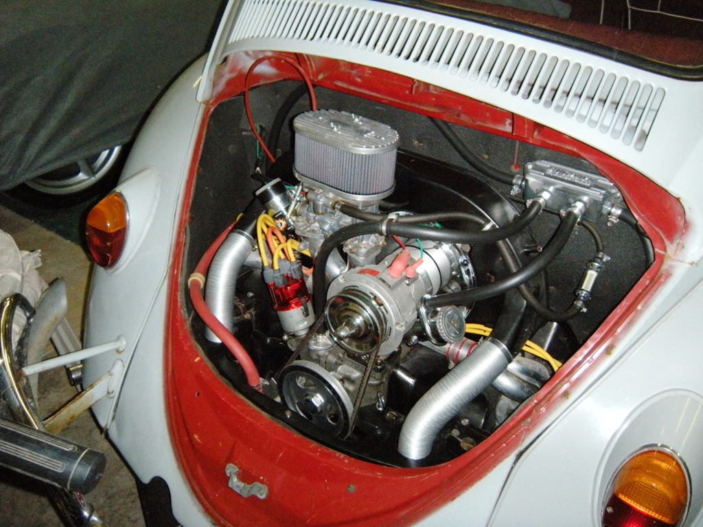 Nice engine bay on the bug. Faster than your Box? :p Too bad we can't pop the hood on the Box to show a dressed up engine. |