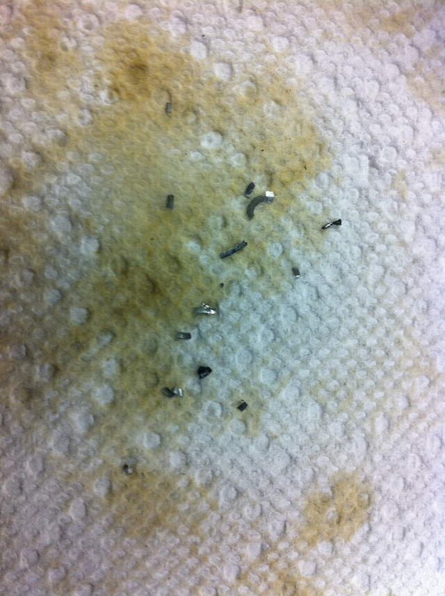 Today was a nice New England day so I decided to change my oil (every 3000). I got 25% off some castrol 5w40 even better. When i cut the old filter open i found about a dozen good size metal shavings not the typical micro flakes. Should I be concerned ?