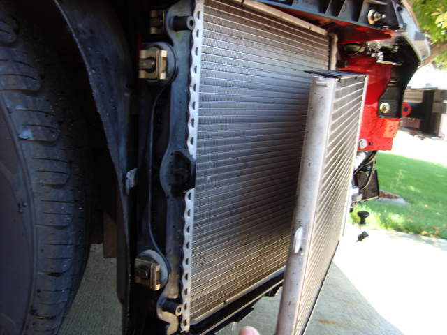 Finally cleaned between the radiators and condensors. There was alot of dirt, sand, rocks, pebbles, cigarette butts and a big piece of a McDonald's wrapper. What's on the radiators in the photo is just a small amount left that didn't come off with the hose I had to brush and pull it out..glad I did this project.