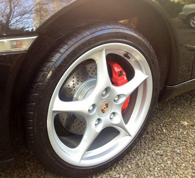 While puting new shoes on the Boxster today, I am convinced on painting the rotors red, with new white decals. The stock rotors are looking pretty shaby, so, I will probably paint the hats with high temp paint, leaving the surface that mates with the wheel bare.