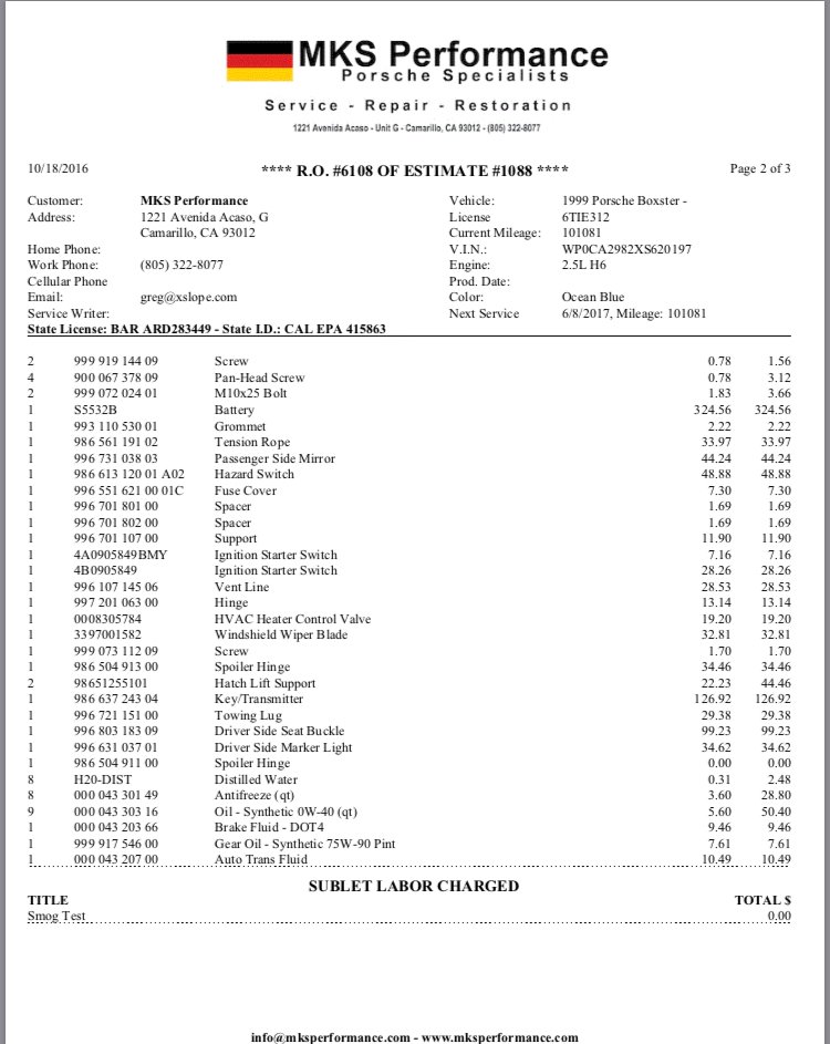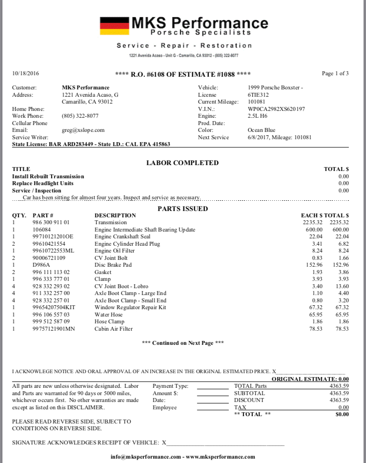I'm trying to find the IMS/RMS on this invoice on a 2002 Boxster S. I was told by the seller that it was done at the same time as the clutch. Well, the invoice for the clutch is attached but I don't see the IMS/RMS as a line item. Can you help me out? Thanks! |