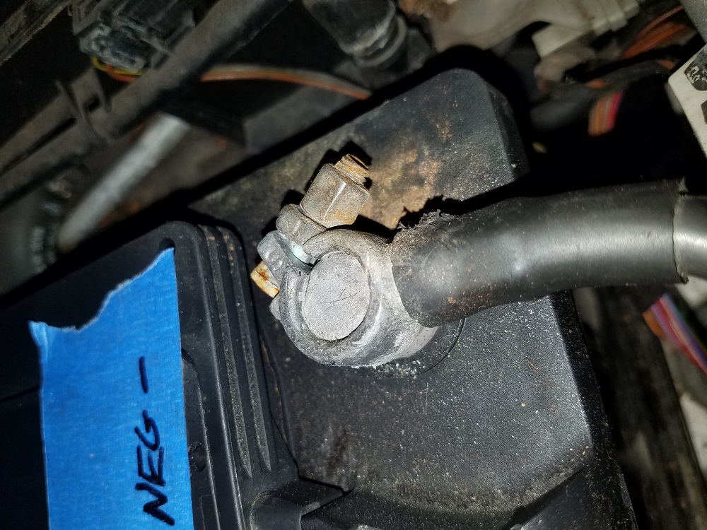 Took the battery to auto zone....Its a brand new store in my neighborhood so everything is clean and perfect.....to include the shiny new battery testing machine....that thing must cost $1000 dollars. The kid didnt give me much info other then it was at 12.55 volts on his machine......12.47 on my multi meter.....I even changed the battery on my meter but no change. I guess I will go with what the $1000 dollar machine said. He said the battery was good. So tonight I cleaned up the negative body post..removed the shrink tubing and inspected.....found zero issues with cable wires....cleaned up a bit added some dielectric grease and shrunk a new boot on. Im not really believing this post was my issue...but gotta start somewhere and it did need to be cleaned up.