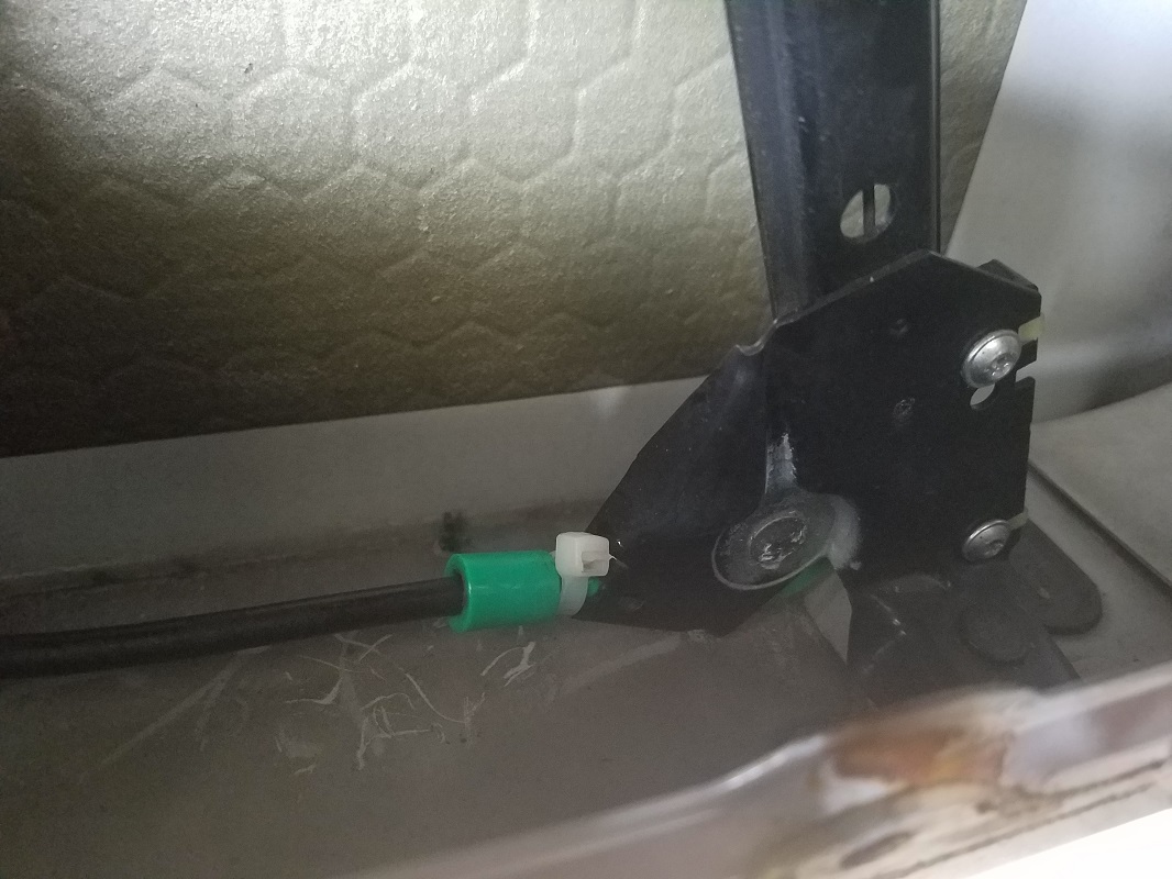 So here are the clues I was working off of......... PW said his repair was on the front green spacer.....nobody else has reported this as far as I know...but the thought was lingering in my head...gotta get to that front spacer! When I manually push the window down with my hands it seemed to sink in the front more then the back. There were no grinding or bad noises that would indicate the regulator motor. There was zero play with front green spacer and cable The inner handle seemed to work but just barely. All that said I bucked up and got on my knees before the 986......gently removed the foam insulation and the speaker box and there before my very eyes was the frickin front green spacer!!!!!!!!!! I gave it a mighty yank and low and behold .....SLACK...........AND LOTS OF IT!!!!! Tried one zip tie with minimal luck.....tried 2 zip ties together and without celebrating too early I do believe the window is now on the move. Anyone wanna buy a micro switch? :) My next conundrum will be .....do I get a bicycle adjuster and figure out how to install the thing.......or are zip ties a lasting repair? |