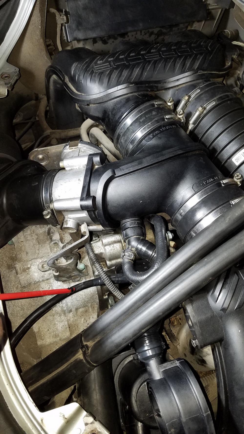 I was doing some needed maintenance on my 01 Box base and everything went really well. I replaced the starter and the AOS. Both were very satisfying repairs, actually just finding the engine was satisfying. Anyway as I was tightening the last starter bolt my socket wrench pushed too hard against what I thought was flexible tubing but turned out to be 18yr old brittle plastic tubing....crrrrack! I was so bummed. I noticed there was a cable inside the tube and just figured it was the trunk release cable or something so I taped it up good and tight and finished the job. I am mad at myself for not verifying if it was the dipstick tube while having the engine exposed but I am pretty certain that it is. Now I know this is a pressurized system of sorts because when removing the dipstick or oil fill cap while the engine is running the engine doesnt like that...so if the dipstick tube is cracked once my tape loses its seal the engine will run terrible. Can u guys view the enclosed pic and verify if this is the dipstick tube in the pic.......and if so....how difficult is the repair? Thanks look for red pointer stickAttachment 22017 |