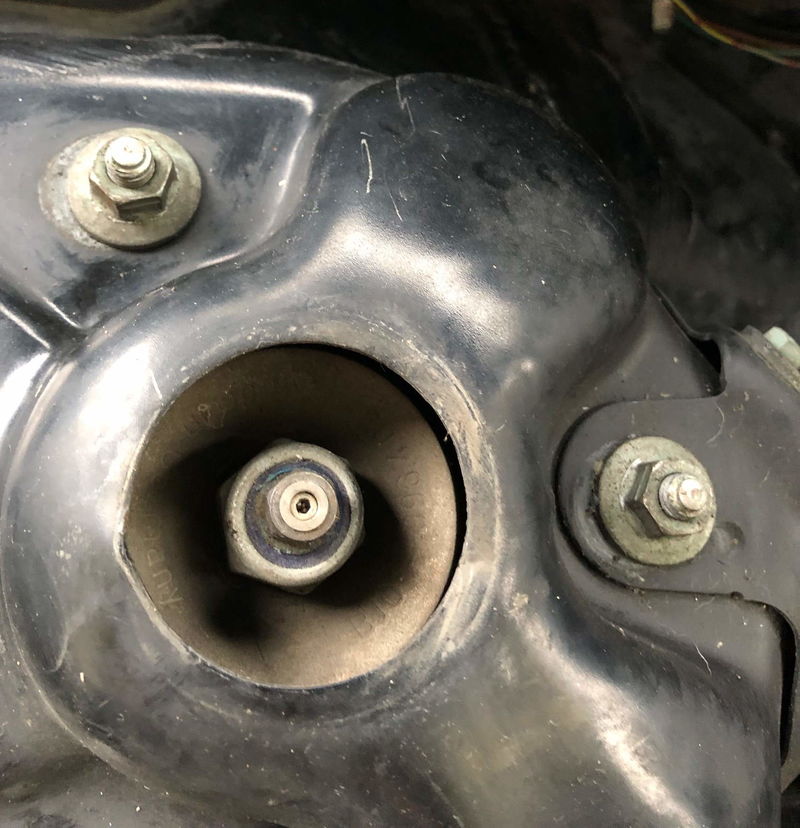 Only solution is to pierce a small hole above the top of the strut and adjust from there.