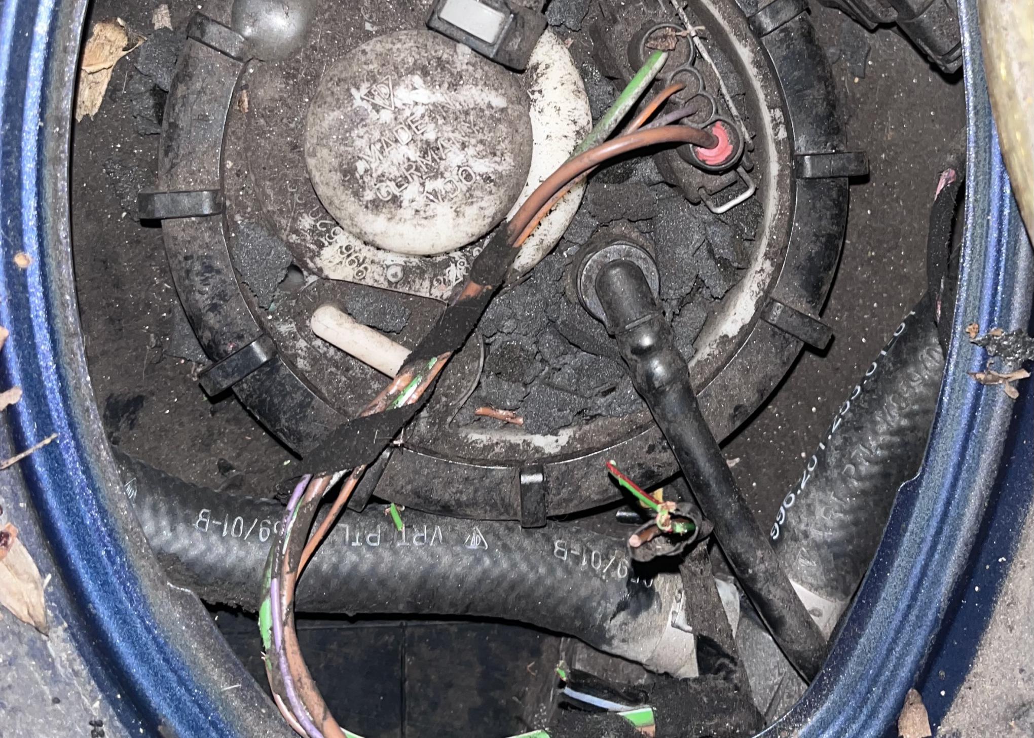 Hi all, have a 986 S 146,000 (100,000 me) runs great but had trouble filling tank so replaced the vent valve. No dice. So in search of a leak due to the codes p0450 and. p0455 I removed battery & support and find a mouse chewed through what I believe is the wiring to the EVAP sensor. See picture. And it is crazy how dirty it is but I will address that!