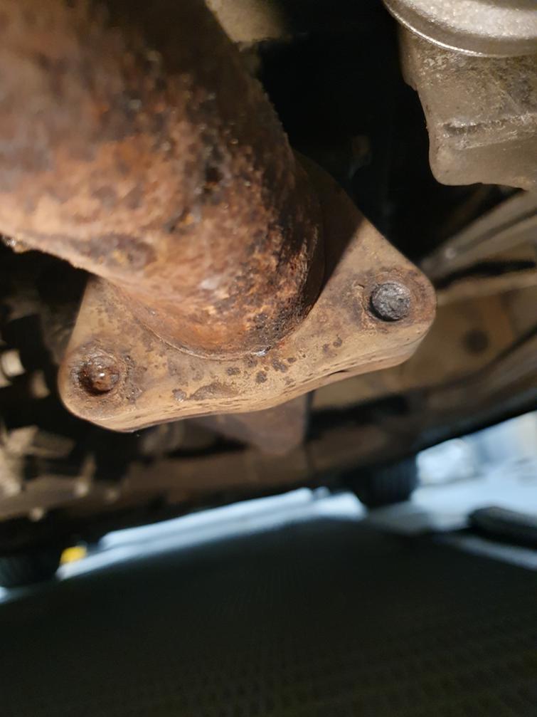Last Thursday I returned some parts from the wreck and had some discussions on this exhaust. His suggestion was that likely it isn't welded, just totally rusted to bits. His advice was to use a pneumatic hammer with a sharp chissel and get some force between the flanges.