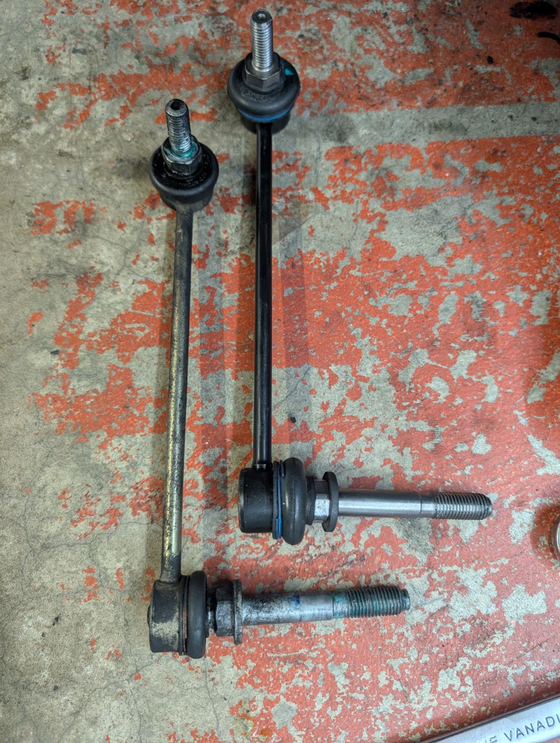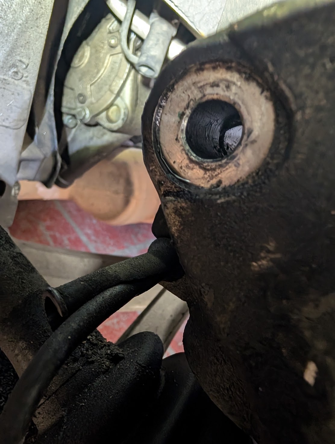 All the other 3 just came out with a hammer tap, and then the new ones slid back on without too much hassle. This one was really tough to get out, and needed to be ”unscrewed" out. When I finally got it out I thought I was good, but now the new one won't go in, the only way I can make any progress is to " screw" it in, but eventually it just spins and makes no further progress. I've tried the hammer with no luck. Any ideas? It does seem like there is some weird lip inside the hole it's supposed to go into. Attachment 23786 Attachment 23787 Not sure why this one is giving me a headache, of course I thought this would be " quick" and need the car tomorrow for work. 🤦 Follow up question, if nobody here has a genius suggestion, is it safe to put the wheel back on and drive it slowly without that one rear drop link to a garage to have it looked at? |