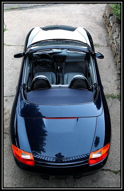 The Boxster looks better with the top down in general. Yours is beastly, low and wide. Proper roadster-ing! :)
